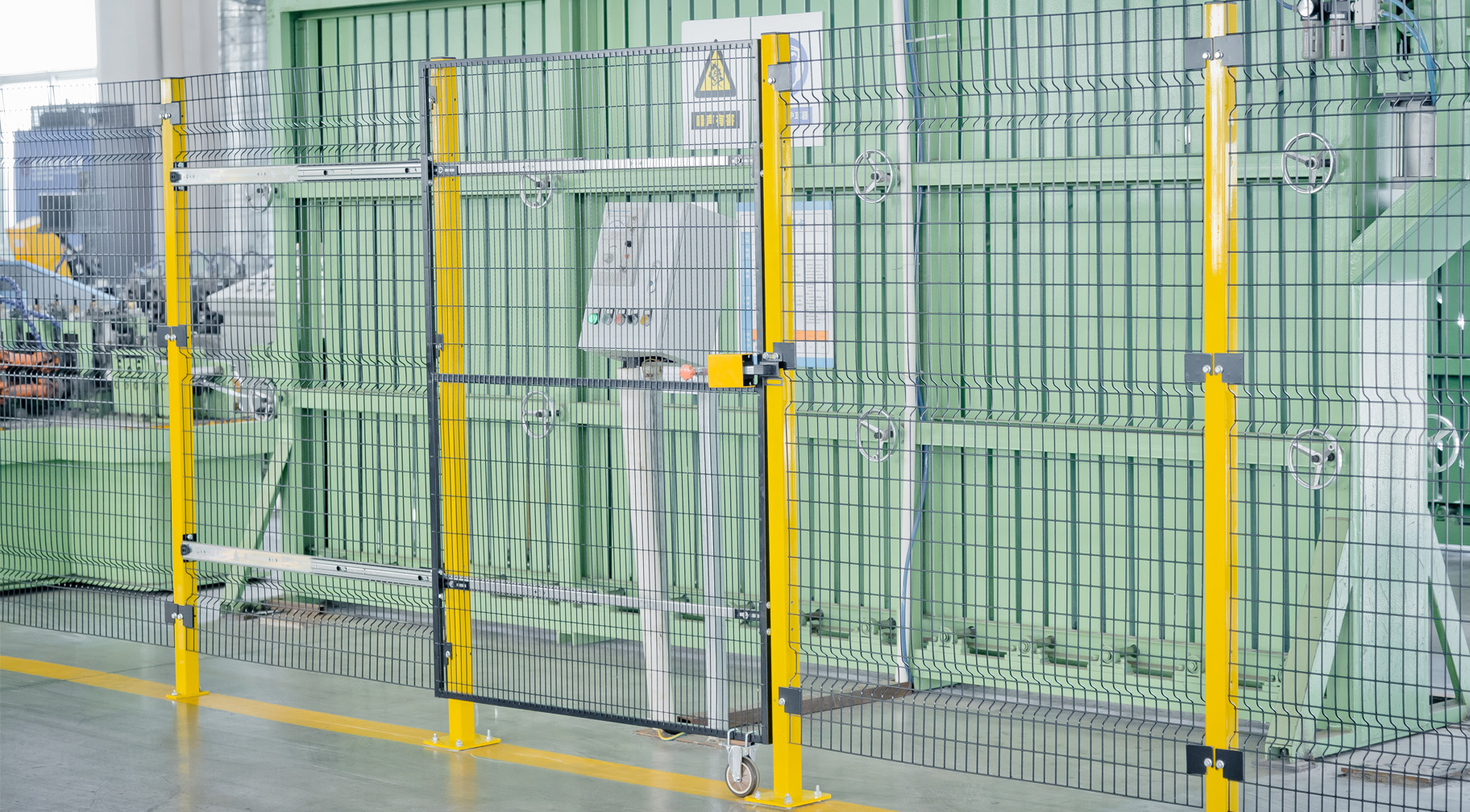 >施萊德?安全推拉門采用優質的Q235鍍鋅鋼管/鍍鋅絲焊接而成。面板框架材料為20*20*1.5mm熱鍍鋅管,充分保證了產品的整體強度。鍍鋅絲的抗拉強度≥400MP,焊點抗拉強度大于2500N。100*20的網孔防攀爬,安全性高。